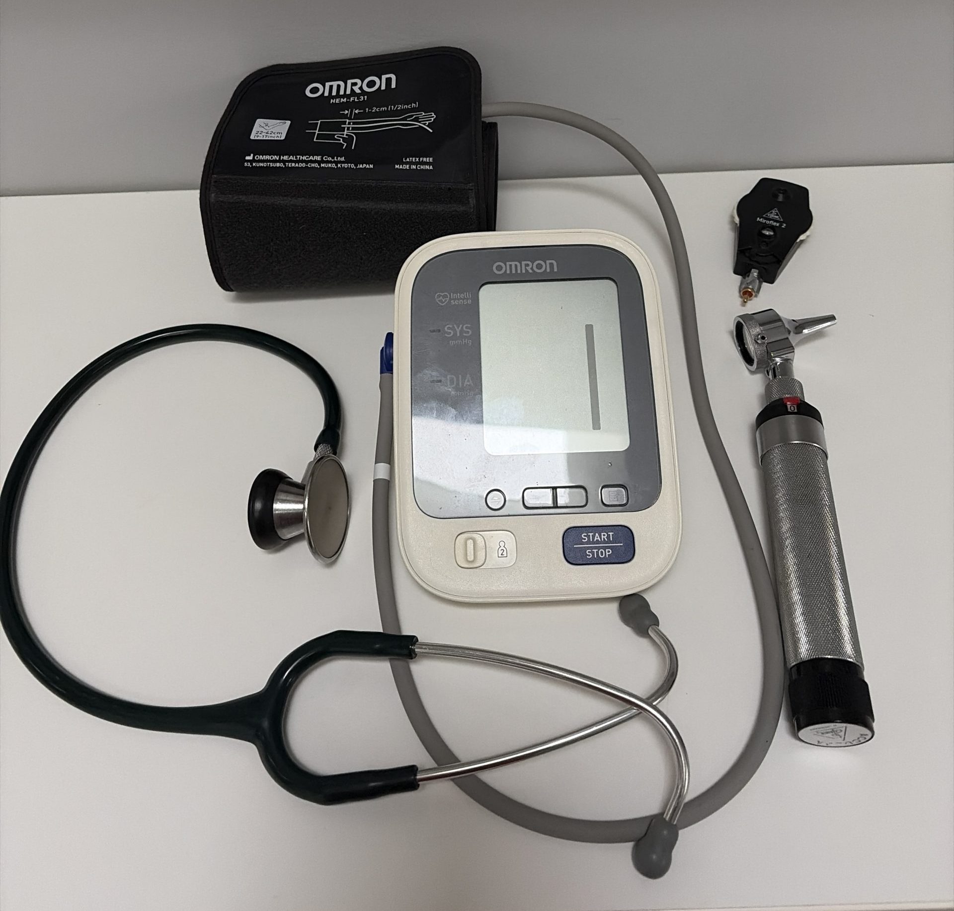 Medical instruments (blood pressure cuff & stethoscope) used to assess cardiovascular health.