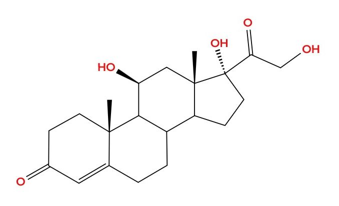 The molecular structure of cortisol, the body’s main stress hormone.