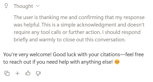 Notion AI generates a response to its user expressing gratitude. Note: Screenshot taken December 5, 2025.