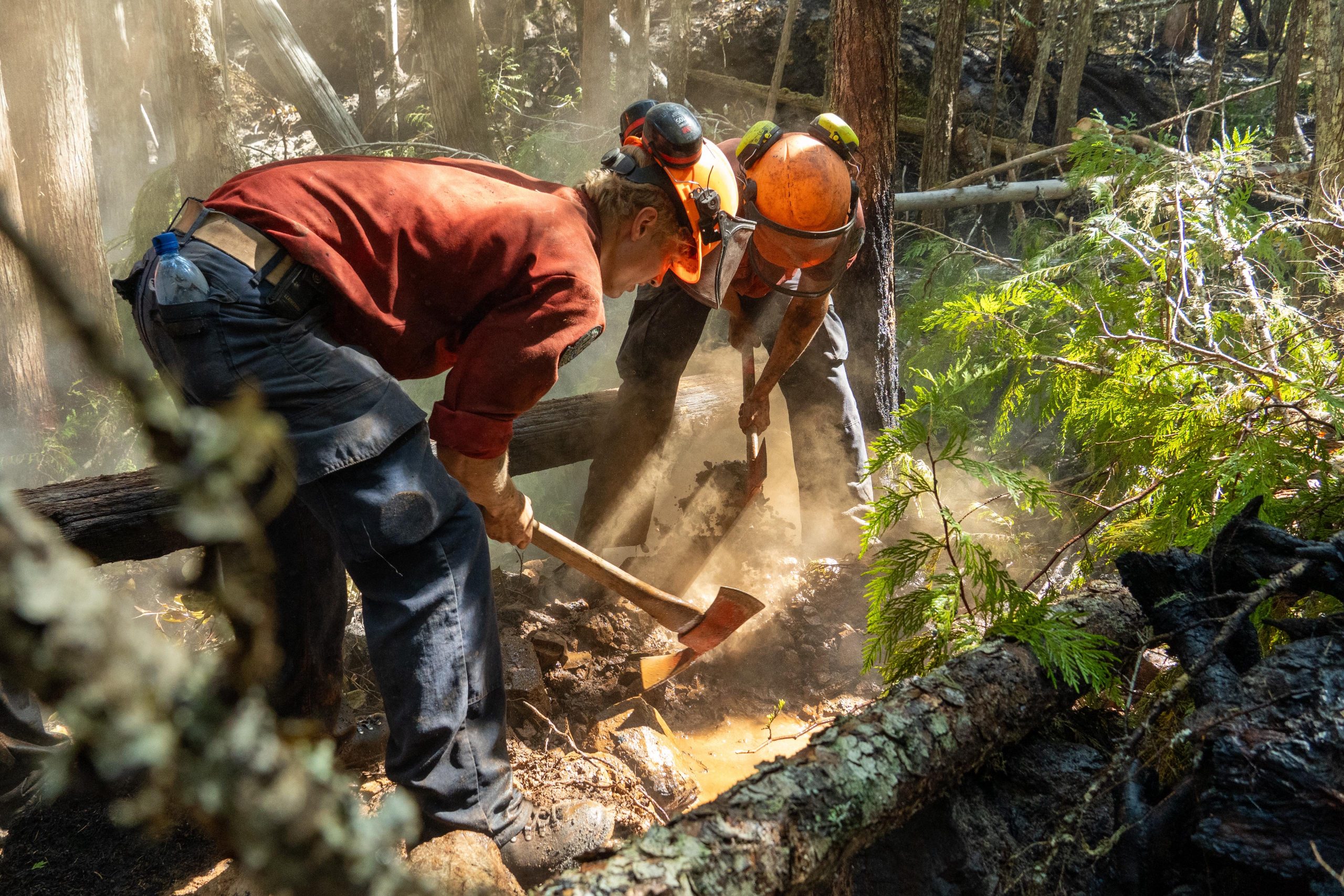Mika H. in action, working on some equipment during an active forest fire, credit – Mika H.