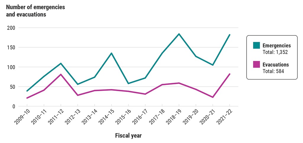 Graph from Public Safety Canada showcases the rise in emergencies since 2009.