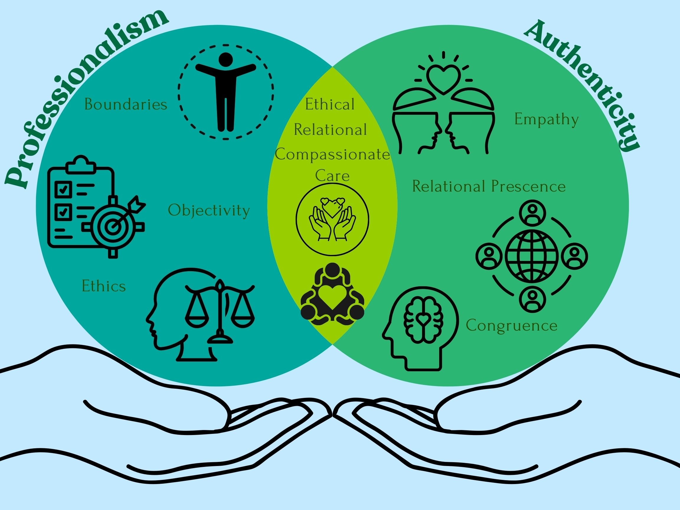 Where authenticity meets professionalism: this diagram shows both the tension and the potential for harmony between ethical boundaries and relational presence.